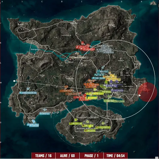 阶段6,圈型刷到监狱山头附近,PeRo选择进攻JDG山头,PeRo将JDG淘汰出局。阶段7,圈型刷到监狱内部。随后PeRo继续往山顶推进,JRG被EDG和PeRo合力淘汰。PeRo枪法再次发挥,再将EDG淘汰出局。阶段8,PeRo无路可去先被淘汰。